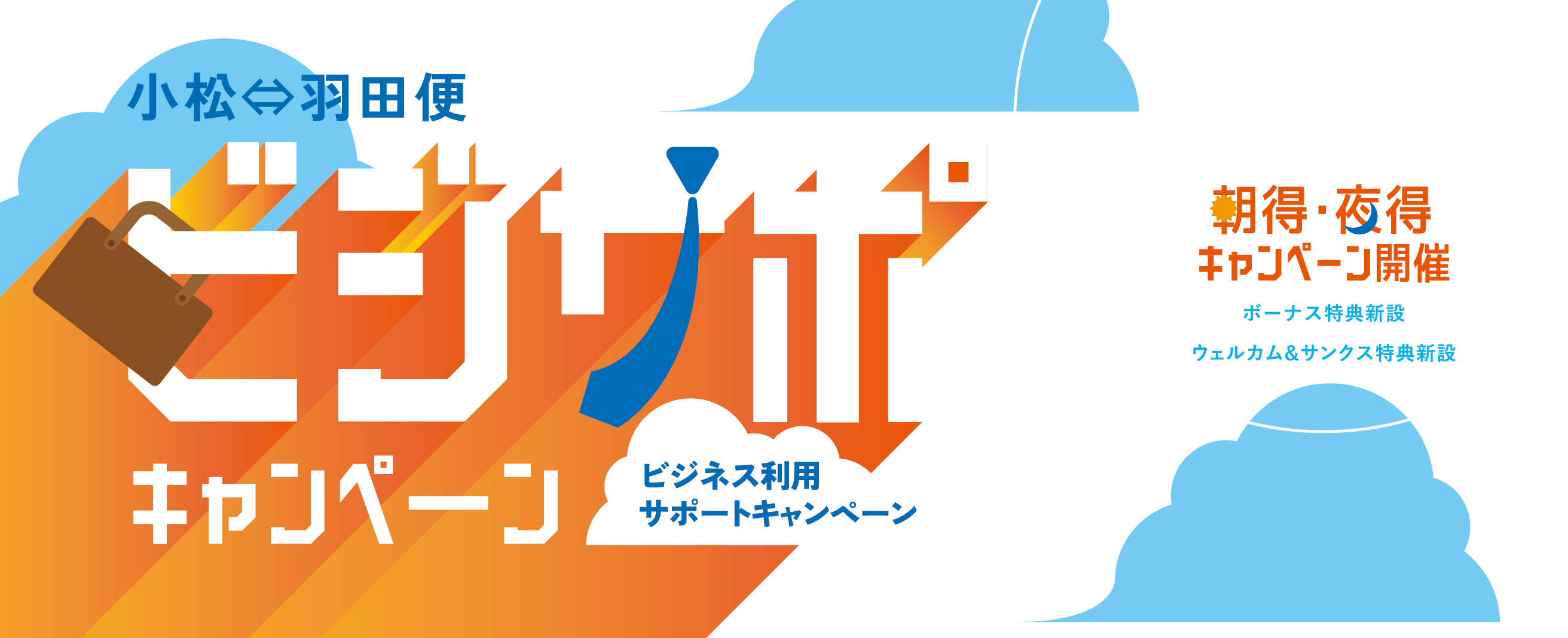 小松・羽田便ビジネス利用サポートキャンペーンは、企業・団体の皆様の北陸・首都圏間のご出張での、小松・羽田便の積極的なご利用を後押しさせていただくために実施するものです。